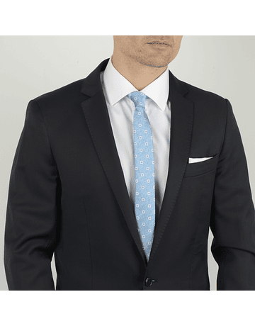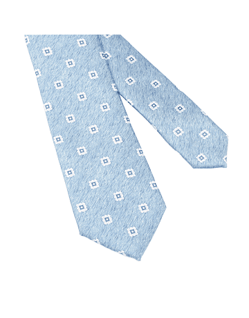 Corbata color celeste con diseño en tonos blancos y azul.